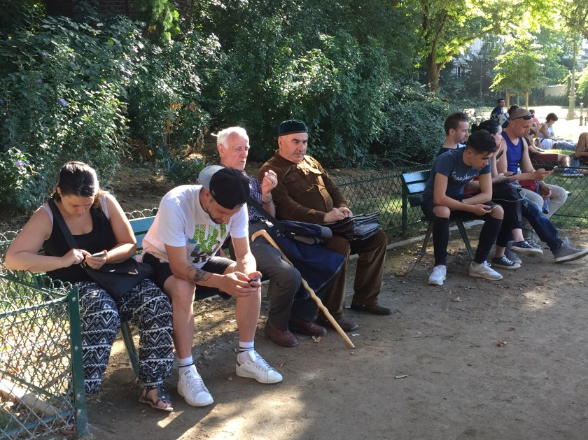 Norge og Frankrike er sammenlignbare på mye, også mobilbruk. Derfor kunne dette skråblikket like godt vært fra Frognerparken, eller på Grünerløkka. Eneste forskjellen er at vi nordmenn er to hakk verre.