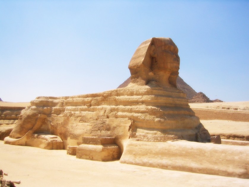 Sfinksen er 73,5 meter lang, 6 meter bred og 20 meter høy, og forestiller et mytisk vesen med løvekropp og menneskehode.