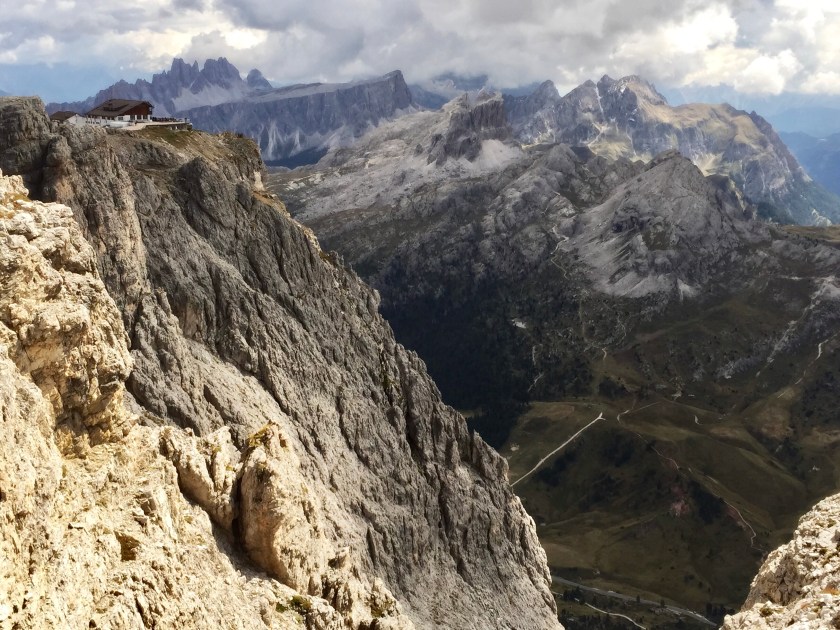 Kabelbanen tar oss opp fra 2.105 til 2.752 m.o.h. Dette er en av de høyeste toppene i Dolomittene.
