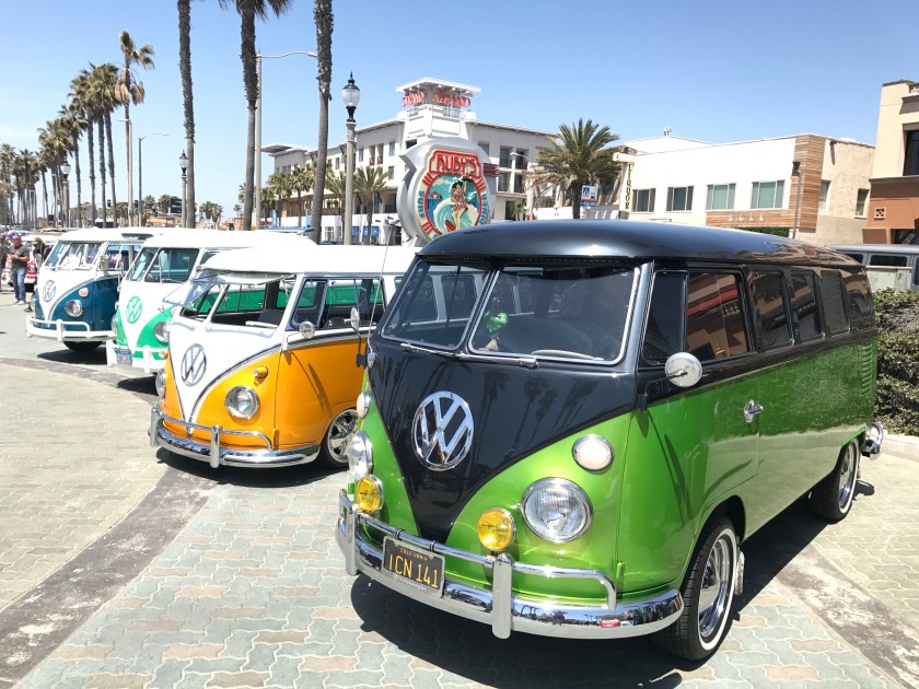 I det jeg kom bort til pieren, ble jeg møtt av ca 100 minibusser i alle regnbuens farger, og med eiere som har vasket og poliert i timesvis, for at vi skulle få bivåne disse herlige doningene – helt gratis. Både piren og Pier Plaza and Amphetheatre var fylt til randen. Noen av dem var til salgs, så jeg tenkte tanken…