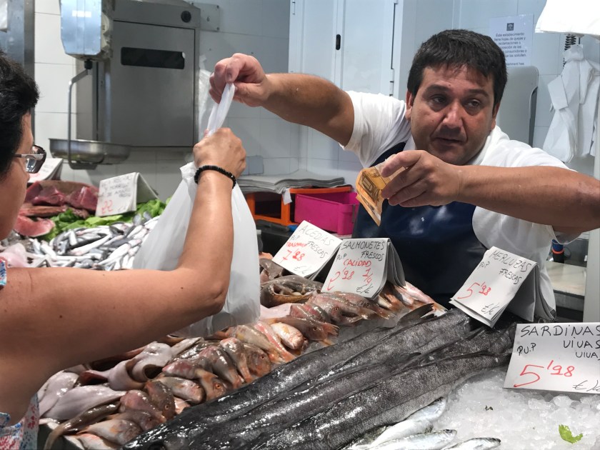 «Lauren Aloise, gorumetkokk og blogger – som har spesialisert seg på spansk mat sier: Jeg har reist verden rundt gjennom flere år og besøkt svært mange matmarkeder i verden, men markedet her i Cadiz fremstår som en av mine favoritter, Jeg forstår godt hvorfor.»