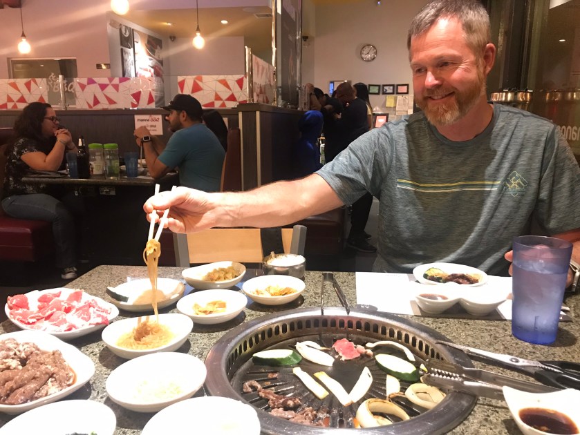 Egentlig skulle vi spise meksikansk på naborestauranten. Heldigvis snudde vi i døra der. I stedet ble vi sittende å grille sammen med denne trivelige gjengen. En uforglemmelig BBQ.