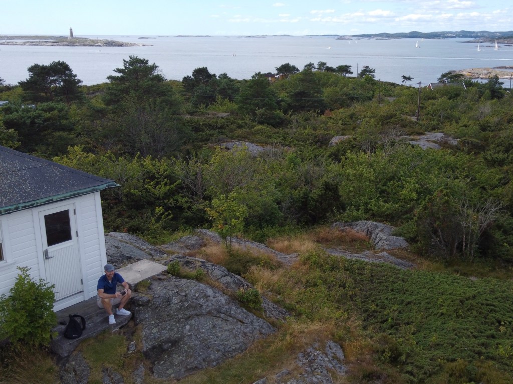 Den gamle loshytta er (naturligvia) et godt utsiktspunkt når du rusler rundt på øya. Det er fler stier opp dit. Den var også utgangspunkt da jeg fløy drona rundt i området.