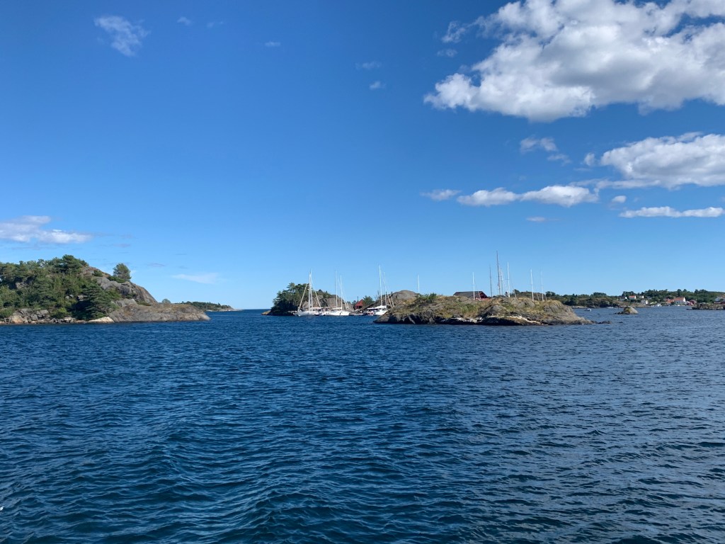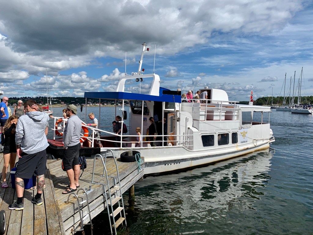 Den lille fergen var full av ferieglade nordmenn og fire dansker, som skulle nyte dagen på Merdø. Ut fra dialektene var nok brorparten ganske så lokale.
