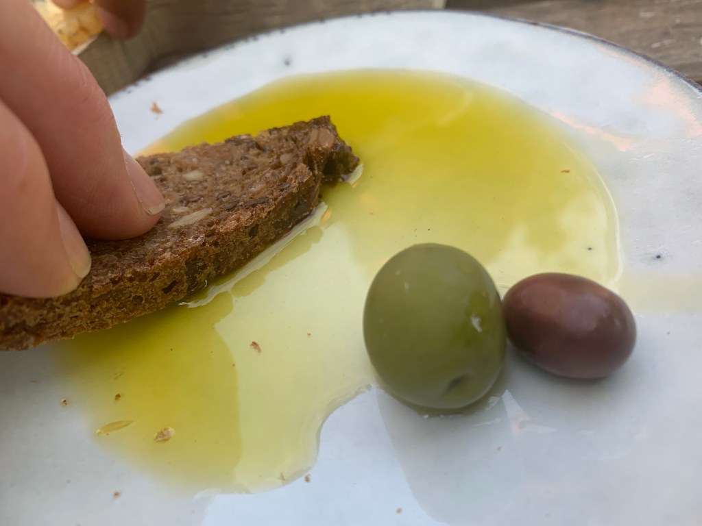 Den engelsktalende kelneren forsvant raskt ut på kjøkkenet – og returnerte med et glass oliven. Takk for det, men vi mente olivenolje.