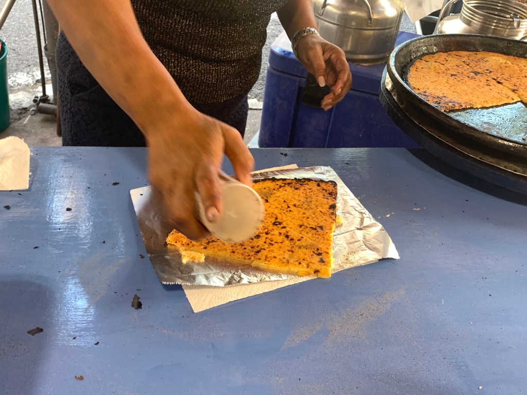Endelig er det min tur til å bestille en Socca! Ett minutt etterpå er det klar.