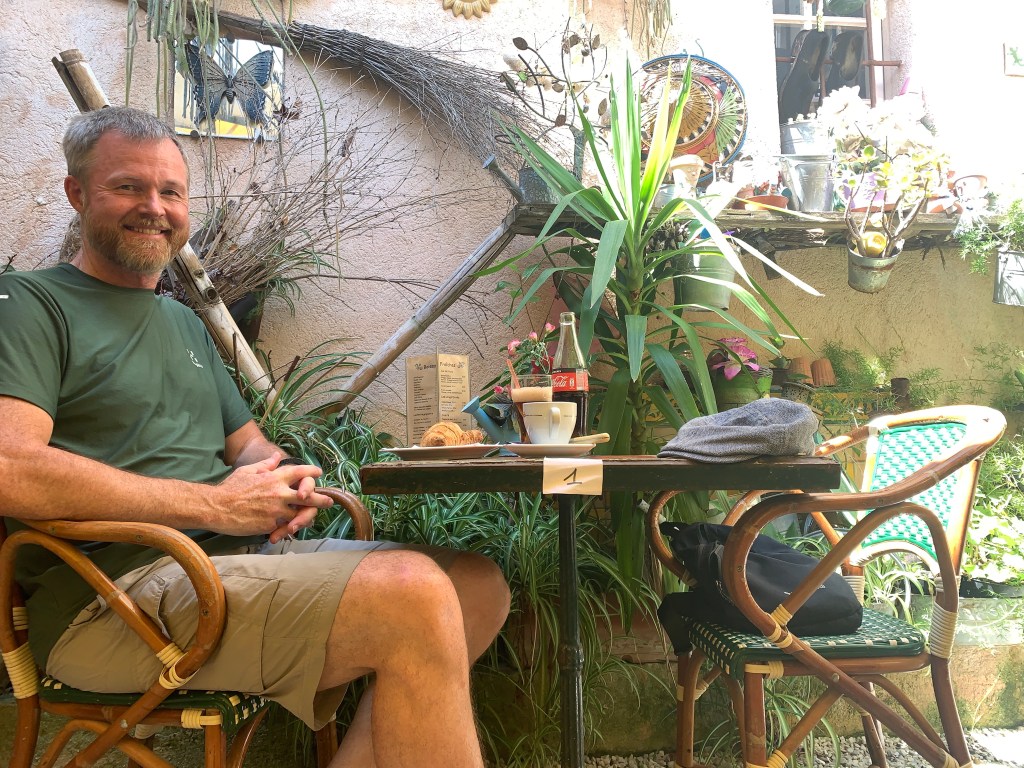 «Le Café Jardin ser ut som alle de andre kaféene i gamlebyen i Antibes – som du bare passerer, da de to eneste bordene utenfor alltid er opptatt. Stopp og gå innenfor, da finner du en unik oase av de sjeldne.»
