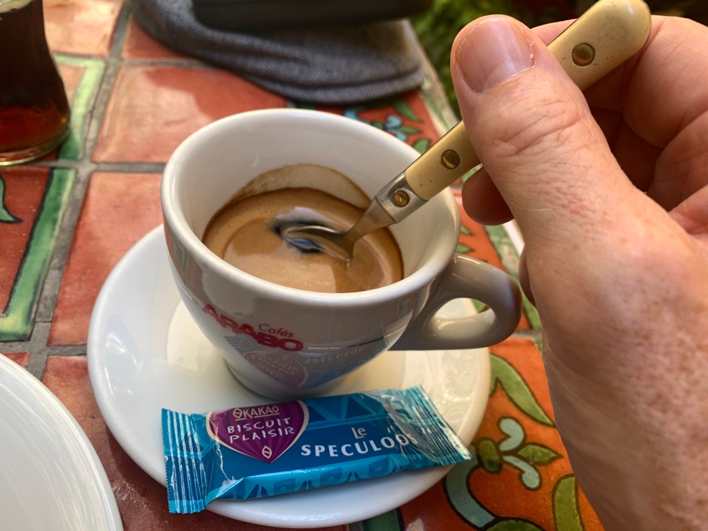 Her hører du ingen trafikkstøy eller bråk, kun en jevn summing av franske gjester som nyter sin espresso og croissant eller lunsj.