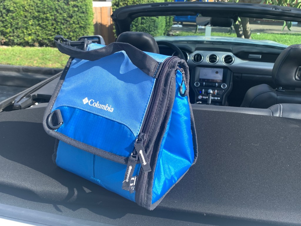 Min bag er av en type som kan strammes inn øverst. Da ligner den litt på hundeveska til Paris Hilton. Alternativt kan du enkelt kjøpe en litt mindre kjølebag.