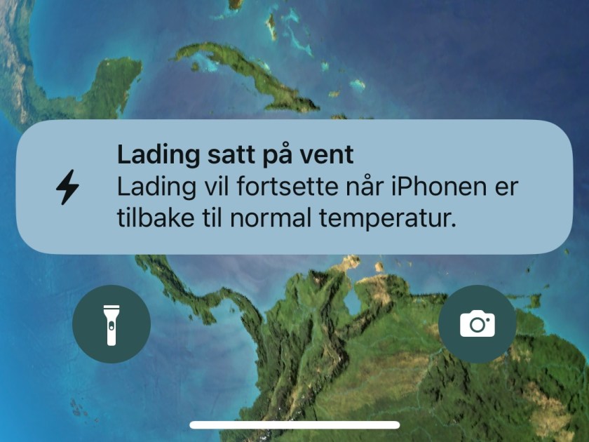«Har du vært på ferie i et litt varmere landet enn Norge og fått denne meldinga? Den kommer daglig hos meg her i Florida. Løsningen ble min egen: Rechargeable Water Proof Cellphone Cooling Device”»