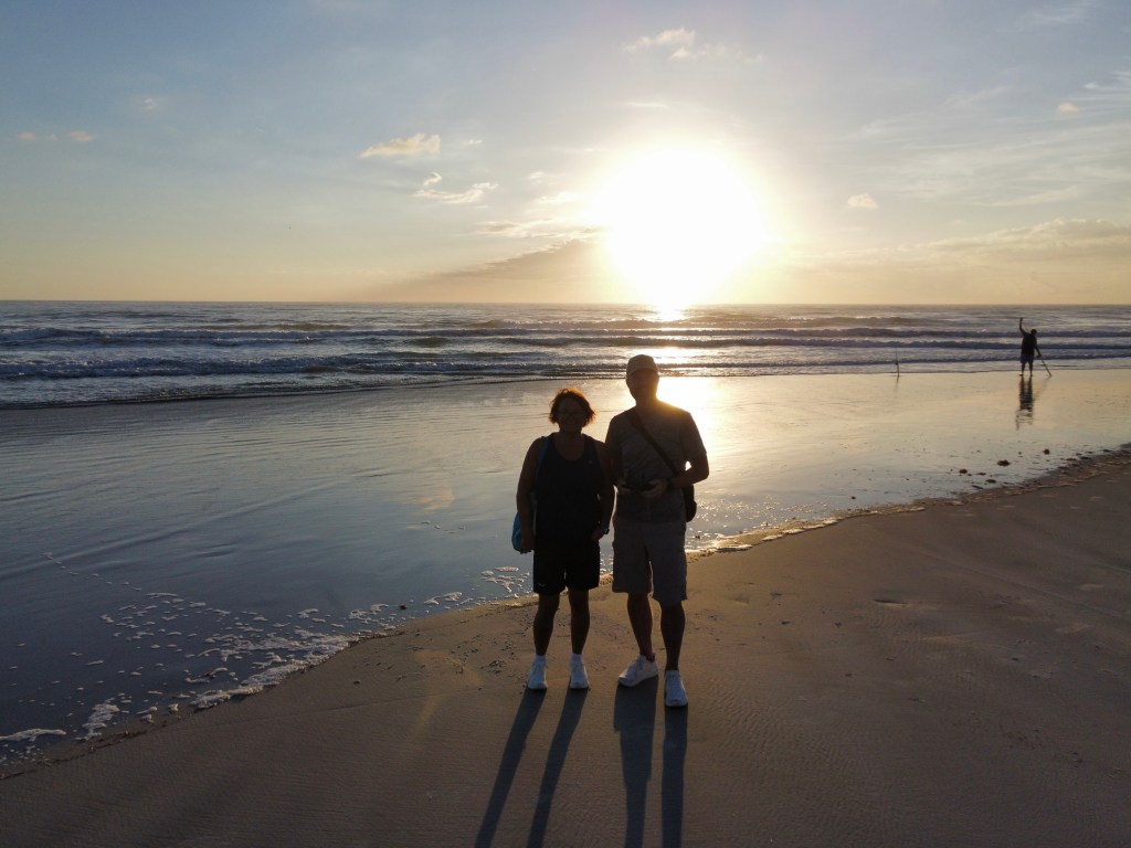 MEN, det finnes stille og rolige stunder her på stranda også: soloppgangen er fantastisk. Blikk stille, noen fisker, andre tar morgentrimmen, og noen nyter en stille stund med meditasjon eller yoga.