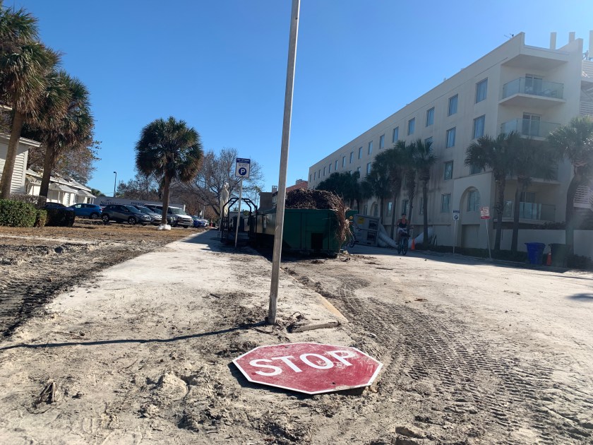Fortsatt flyter vannet flere steder på Key West. På grunn av sand og søppel som tetter sluk og drenering, vil det ta tid å bli kvitt alt vannet.