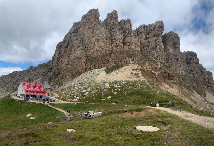 Fra Williamshütte går det bratt – og da mener jeg bratt, opp til Rifugio Sasso Piatto. Her bør man spare på kreftene og gå sakte.