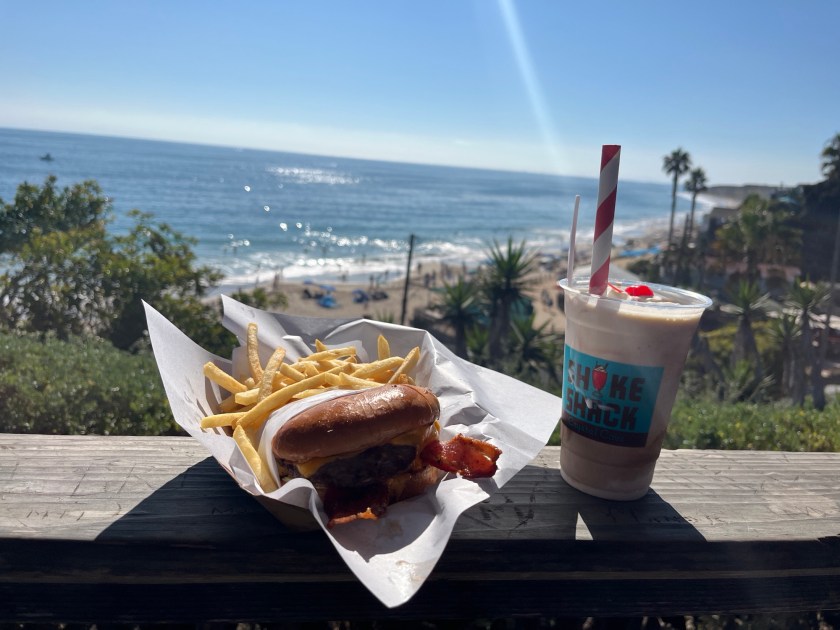 «Kjører du sørover Pacific Coast Highway gjennom Newport Beach i Orange County i retning San Diego, MÅ du stoppe ved Shake Shack. Her får du en av Californias beste burgere – og en fantastisk utsikt på kjøpet. Vi stoppet nettopp for fjerde gang.»