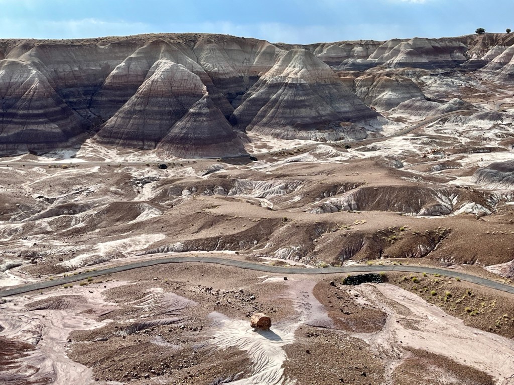 Like etter å ha passert bommen inn i parken, kommer man til Painted Desert, og opplevelsene står i kø. Her kan du oppleve et spektakulært landskap preget av fargerike, eroderte fjellformasjoner kjent som “Badlands”. Området er kjent for sine strålende og varierte farger, inkludert rødt, lavendel, oransje og rosa, som skyldes de rike forekomstene av jern- og manganforbindelser i bergartene.