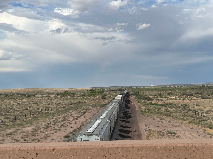 «Først kobler man sammen fire dieselelektriske lokomotiver – gjerne av typen BNSF C44-9W.41990, så slenger man på 60 godsvogner, deretter enda et par BNSF C44-9W.41990, før man avslutter med enda 60 til 80 godsvogner og et par BNSF C44-9W.41990 bakerst. Altså et vanlig amerikansk godstog på 1,5 til nesten 3 km.»