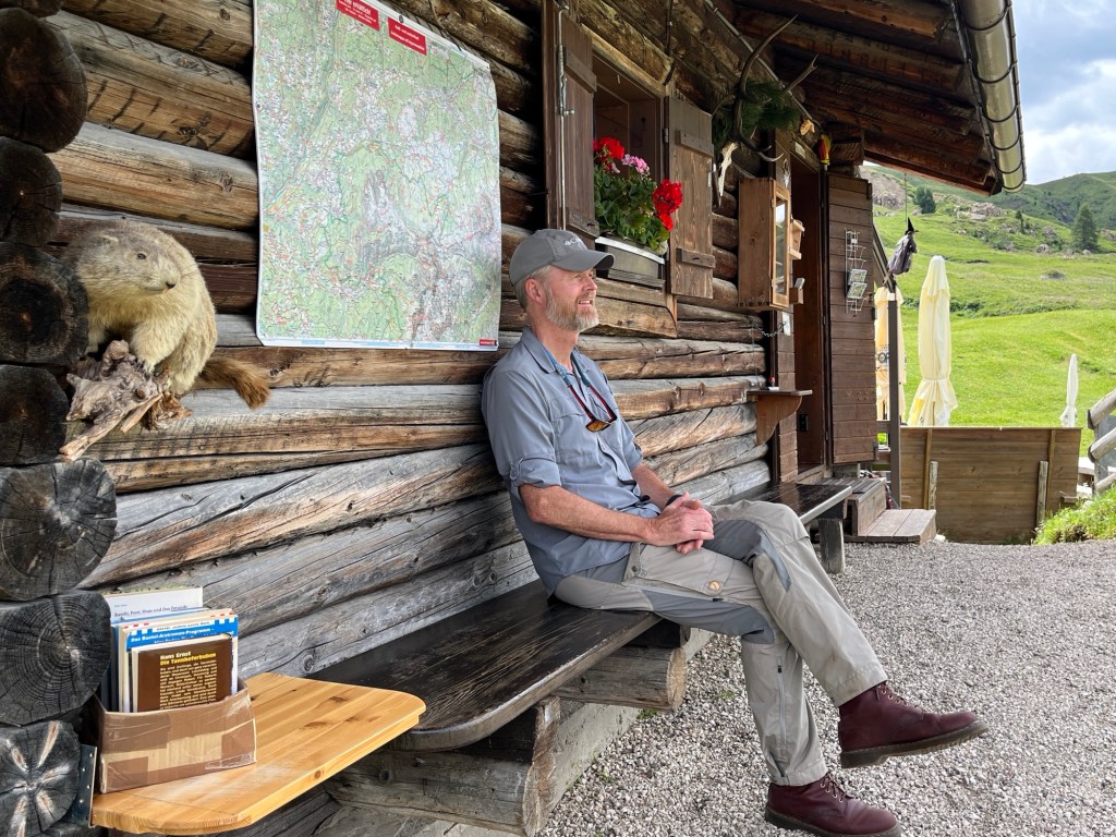 Mange av husene i Seiser Alm – Murmeltierhütte inkludert, ligger lavt i terrenget, delvis gravd ned og godt skjermet bak jordvoller eller stein. Det er ikke tilfeldig – dette er gamle byggeskikker tilpasset livet i høyfjellet.