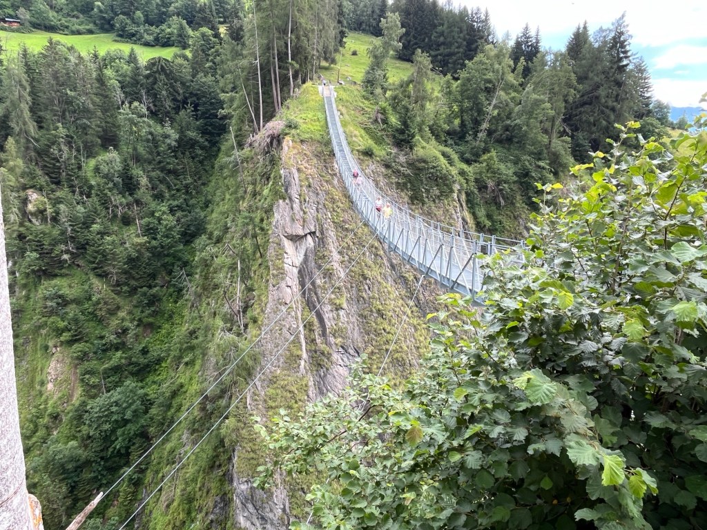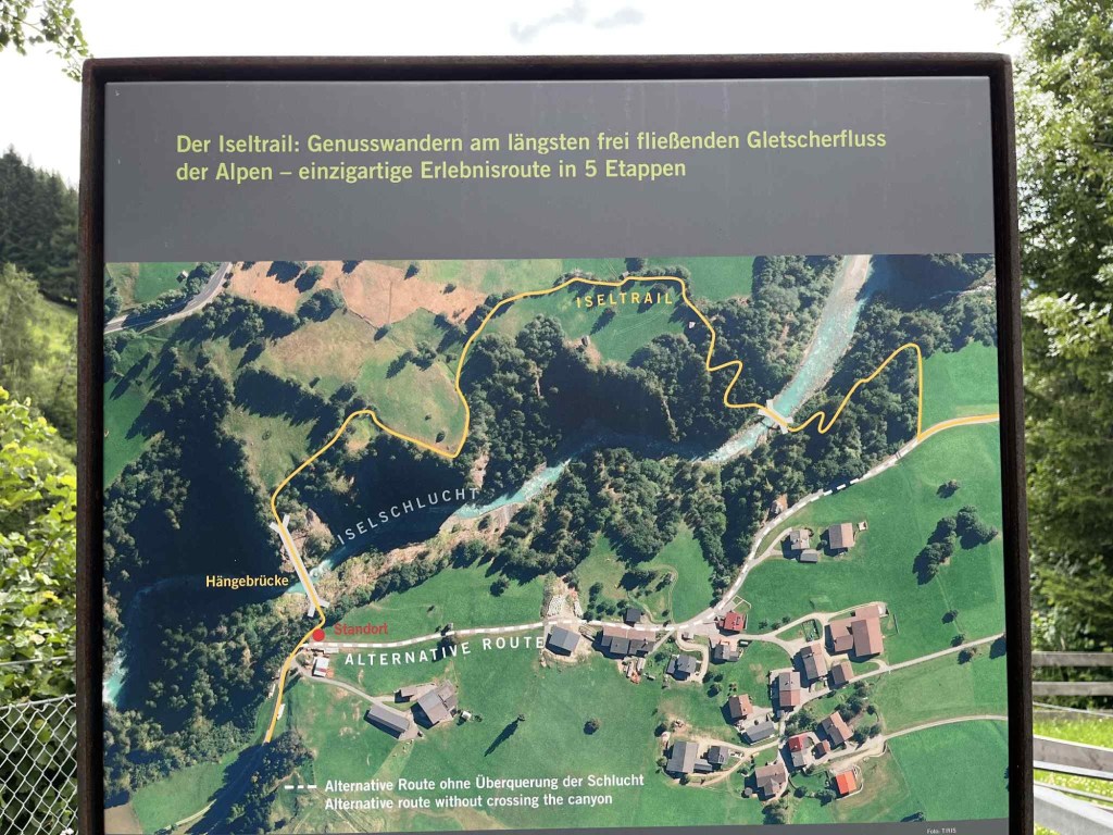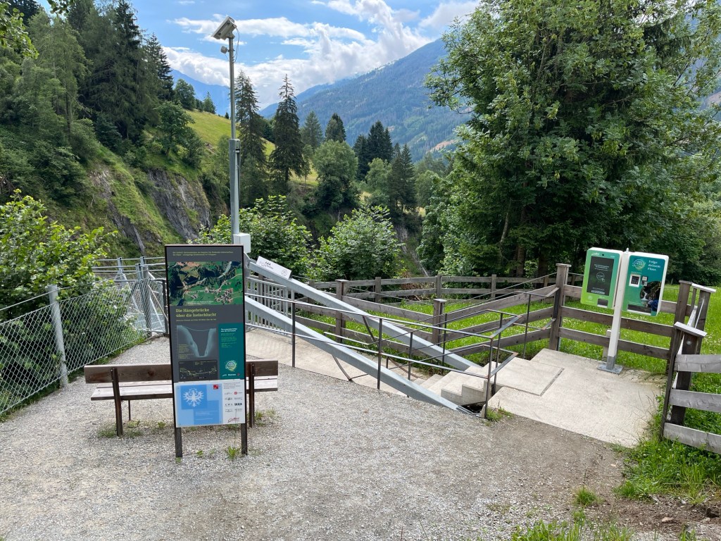 Hvor i all verden er Isel Gorge? Vi er på veg fra italienske Seiser Alm til Zell am See i Østerrike, og kjører igjennom Øst-Tirol og Nationalpark Hohe Tauern. Ikke langt fra den lille landsbyen Matrei in Osttirol, ligger en hengebro med det klingende navnet Hängebrücke Iselschlucht. Det høres kanskje ut som noe dramatisk, og det er det også – på en ganske overkommelig (og faktisk barnevennlig) måte.
