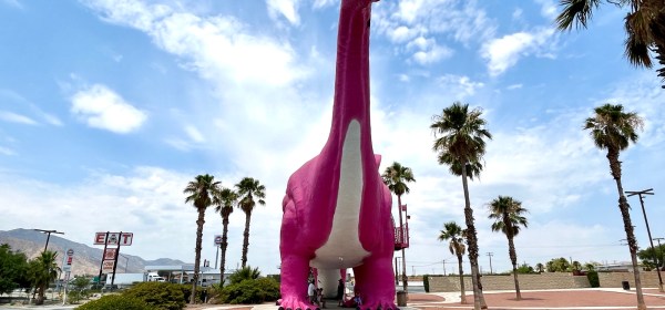 «Claude K. Bell (1897–1988) var en skulptør og portrettkunstner som i 1958 åpnet Wheel Inn Restaurant i Cabazon, California. For å tiltrekke seg kunder til