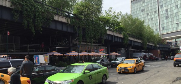 «Den nesten 2,5 km lange «lineære» parken slynger seg mellom skyskrapere på Lower West Side på Manhattan, der den hever seg høyt over trafikken og